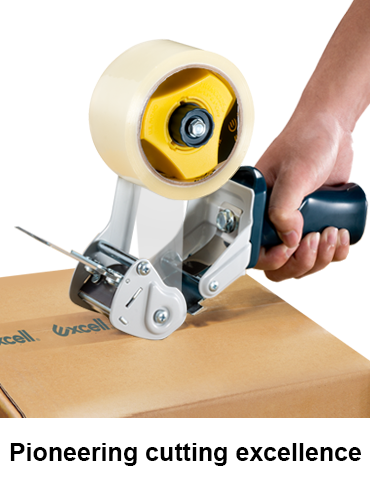 - Retractable safety blade that cuts the tape only when the